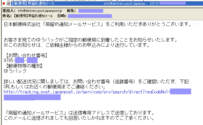 日本郵便株式会社「局留め通知メールサービス」をご利用いただきありがとうございます。