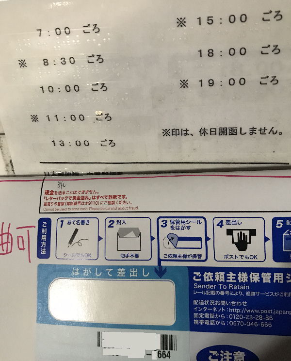 郵便物荷物に入れて追跡を実施した結果です。