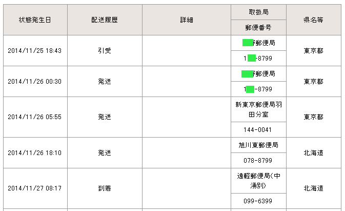 ・発送時間を基準としていますので、引受時間にかかわらず発送されなかった場合は目安よりは遅れます