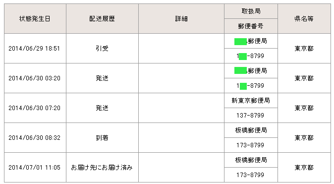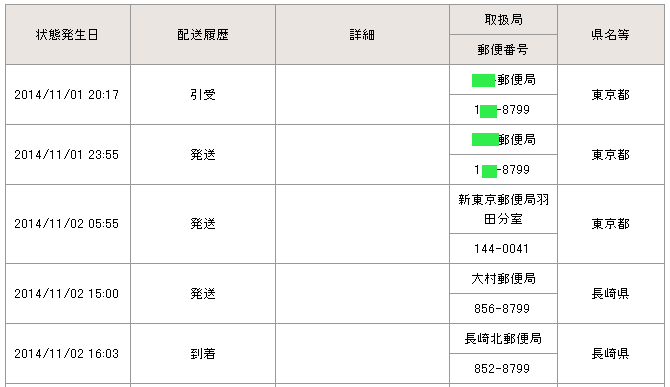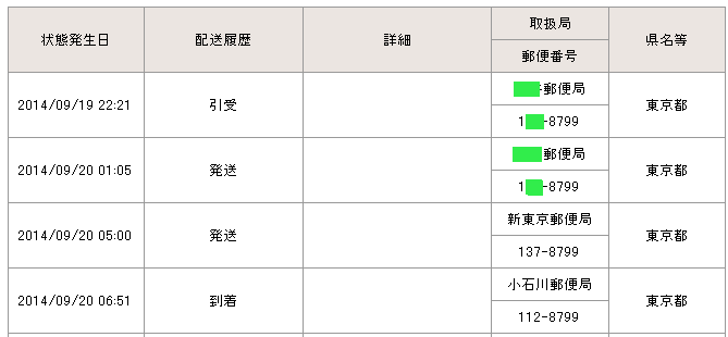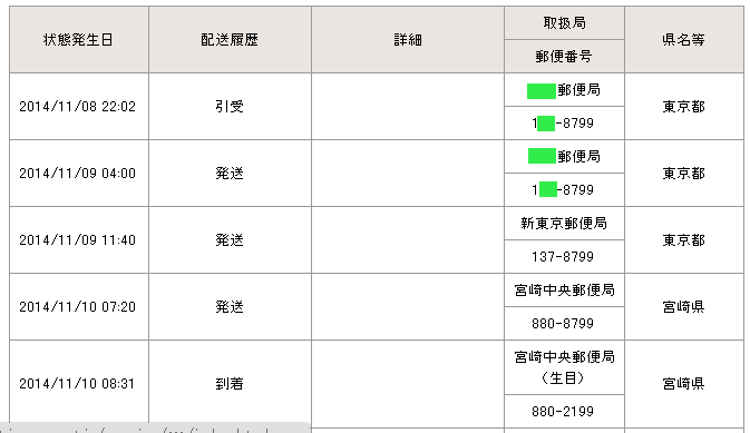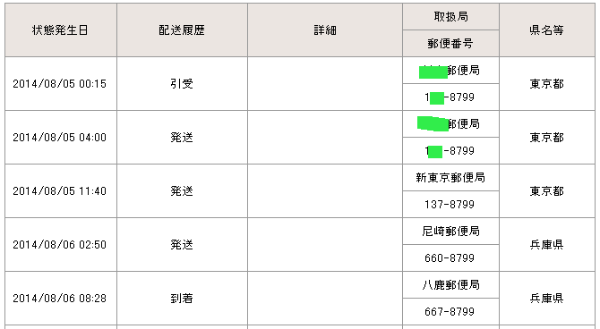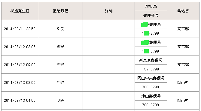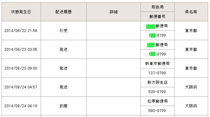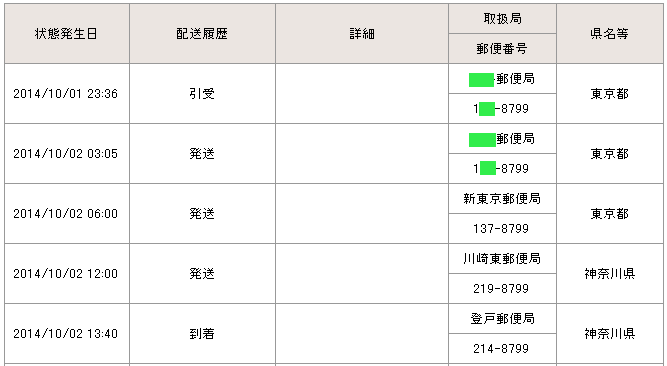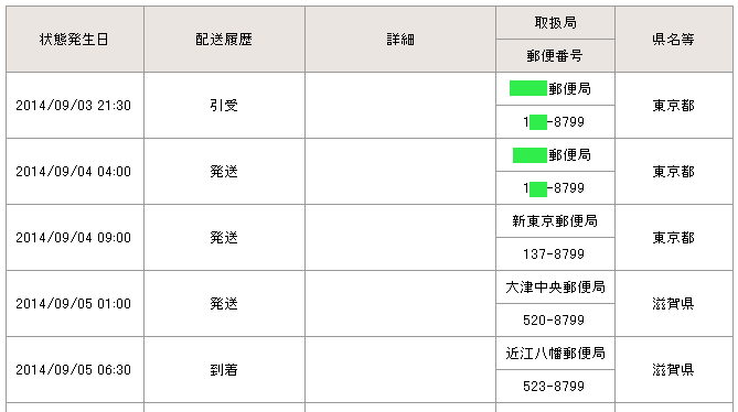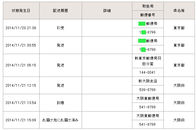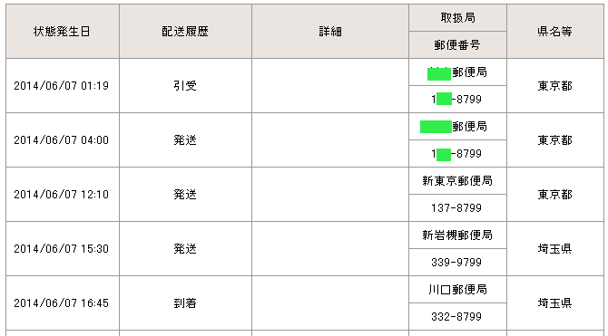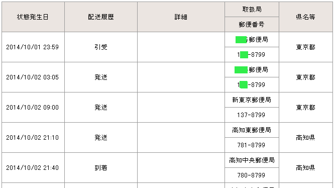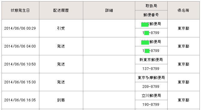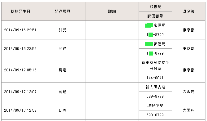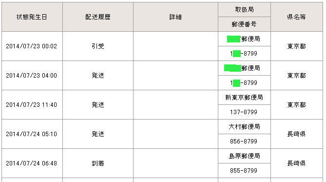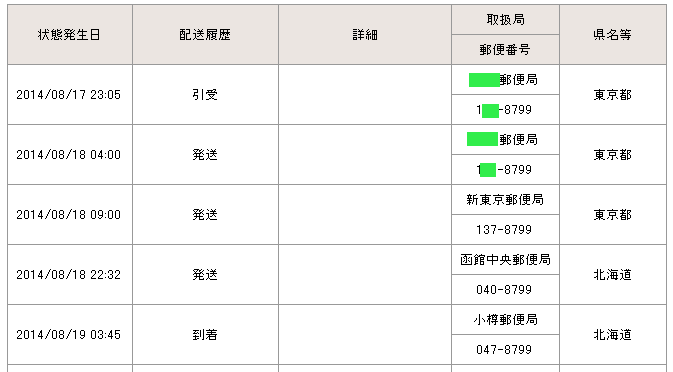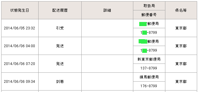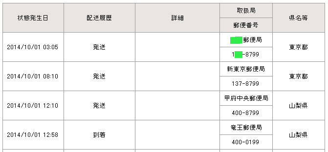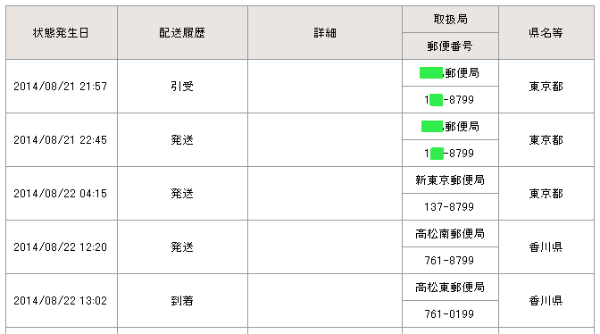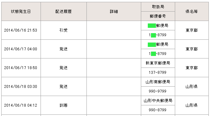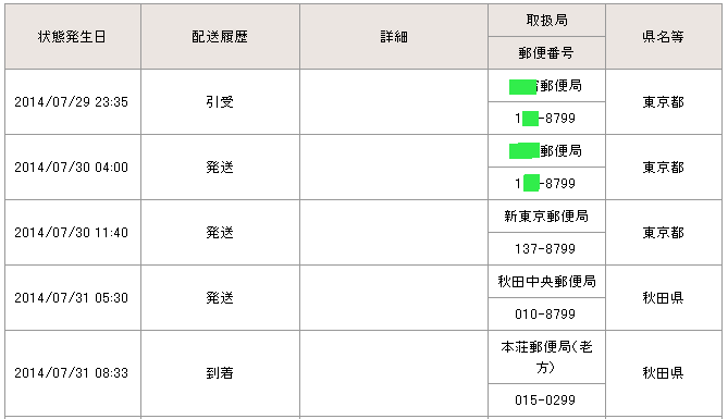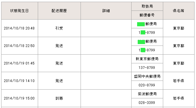 当日の14時台までに配達局に到着していた場合→「当日午後」