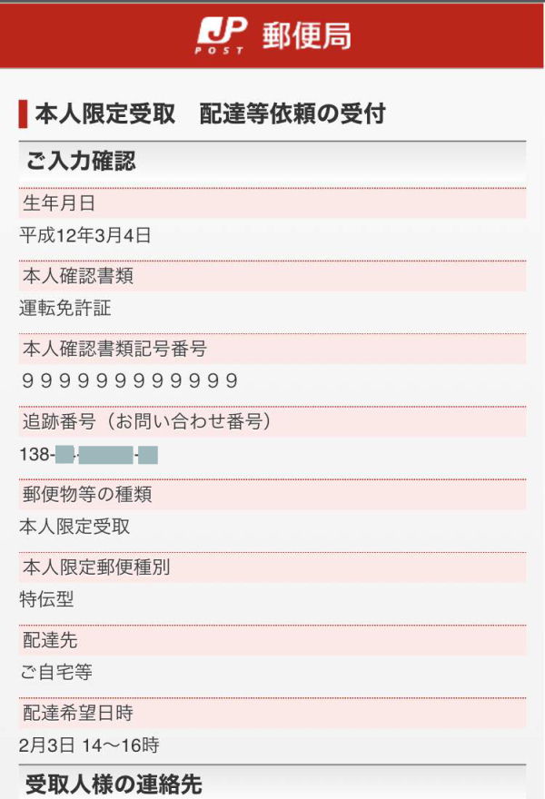 ○追加:本人限定受取郵便(2021.01末まで)or不在票を見ていないが追跡番号のわかる場合