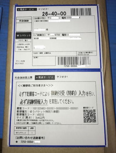 ・ゆうパケットは1枚。ゆうパックは4枚(プライバシー配送は3枚)出てきます
