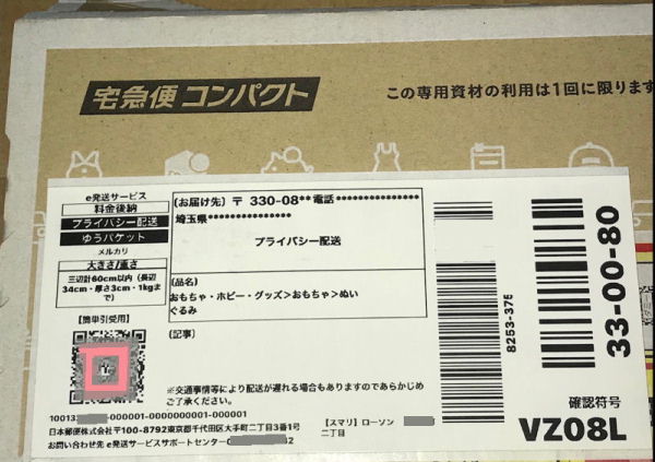 今まで、ゆうパケットポストにはA4の箱の横置き左下に事前にQRコードの印刷されたシールが貼られた状態の