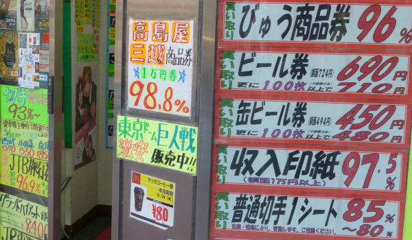 以下、「金券ショップ利用の場合」「個人取引(ヤフオク)利用の場合」「直接使う方法」にわけて記載します。
