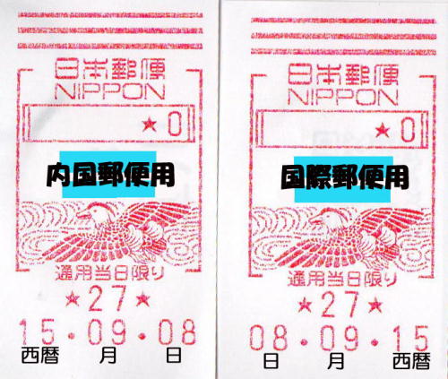 別納証紙(日本国内宛の内国郵便用、外国宛の国際郵便用)