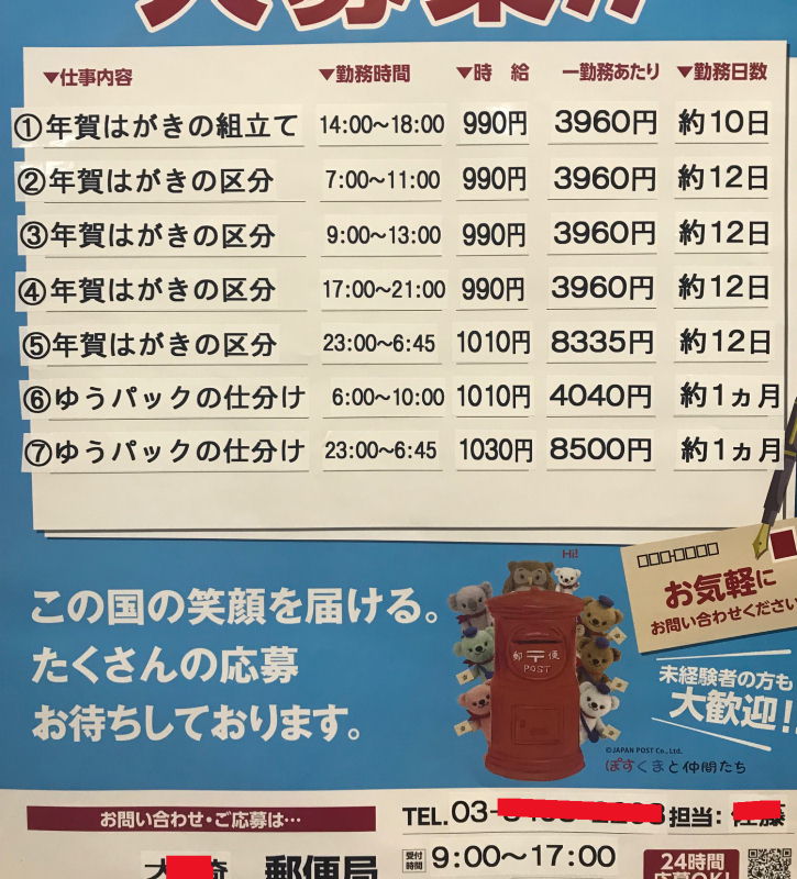 今年も年末年始の郵便局年末年始アルバイト告知風景の季節になりました。