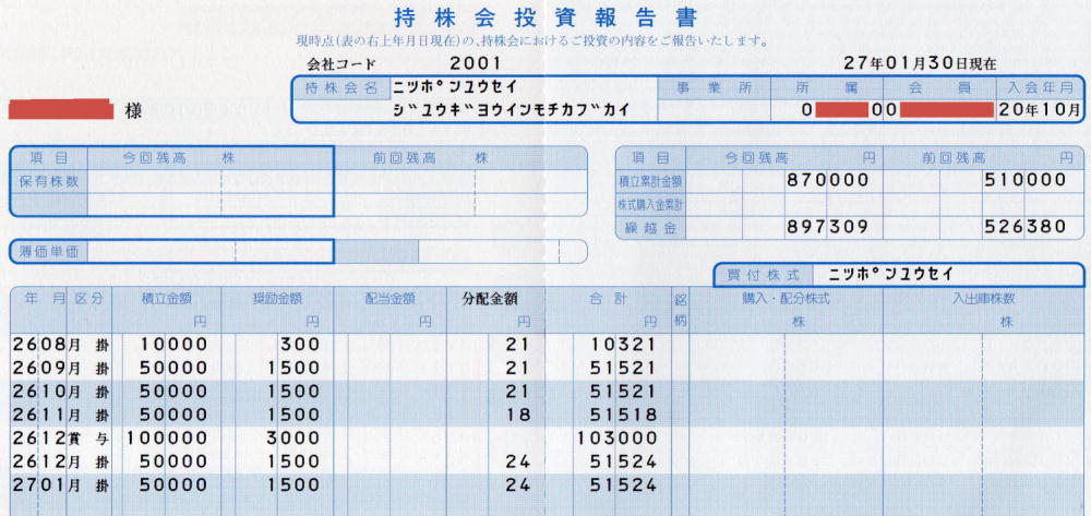 日本郵政従業員持株会に入っていると給与天引き自動引き落としで積み立てられます。