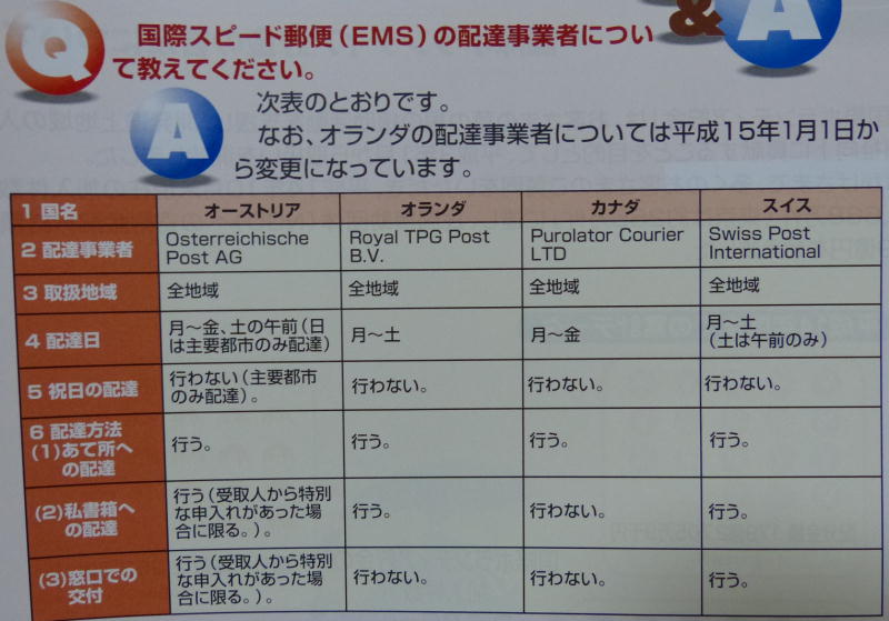 10年くらい前の外国でEMSを配達している会社についての資料です。